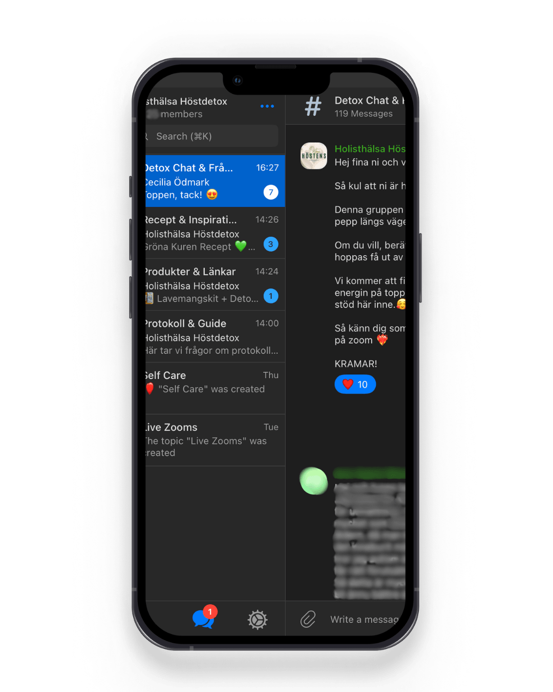 Daglig chatgrupp: inspiration, pepp och direkt kontakt med oss och communityt under hela detoxen.